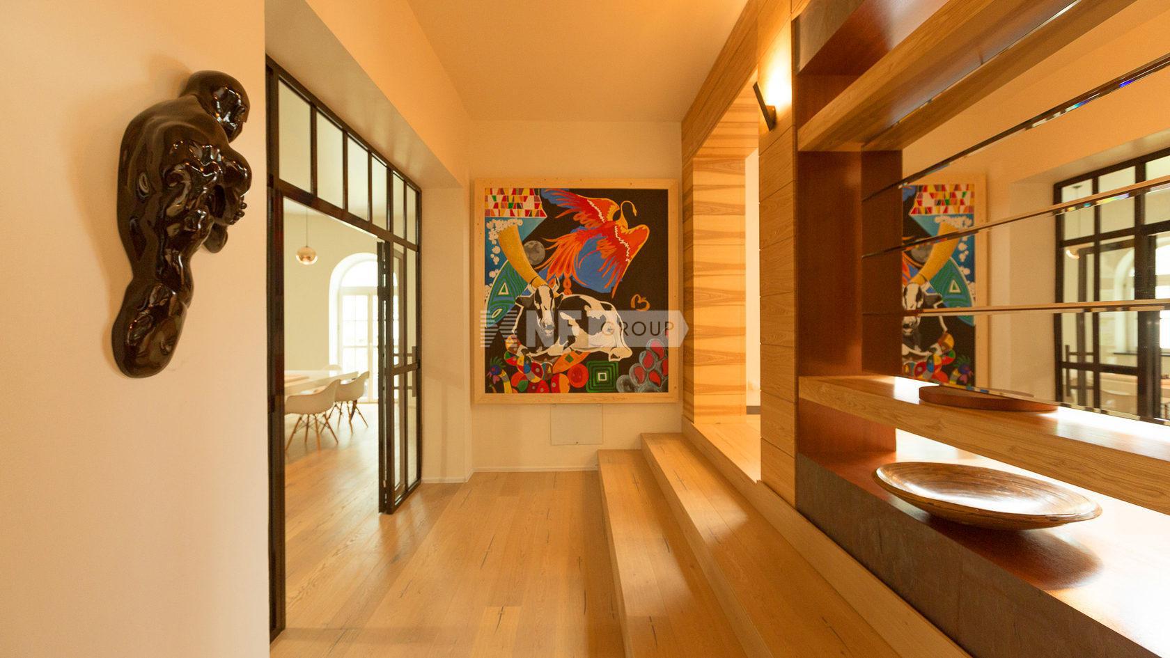 Великолепная входная группа, величественная гостиная с дизайнерским камином, уединенные спальни, кабинеты, терраса с выходом в сад, оранжерея, СПА-зона и римский хамам, помещения свободного назначения и помещения для обслуживающего персонала.