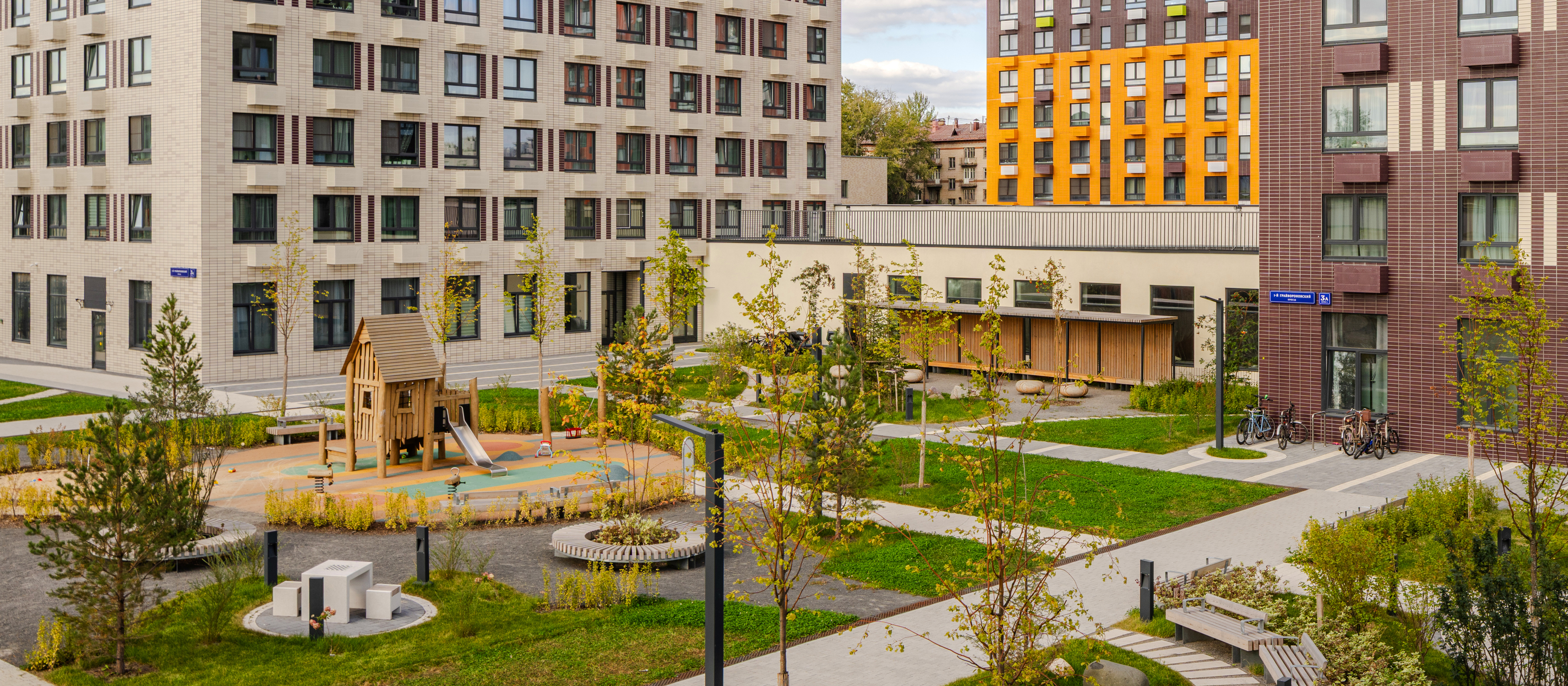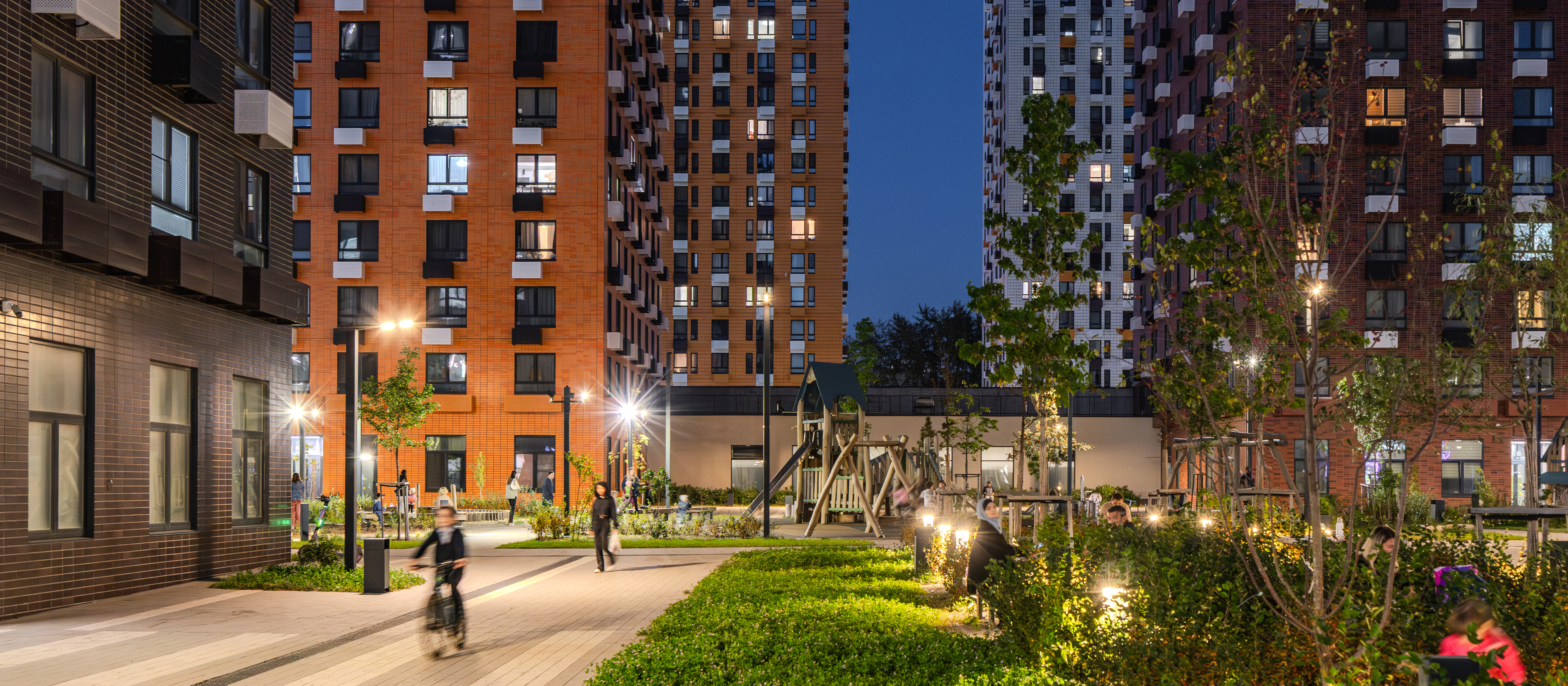 В проекте предусмотрена медленная зона для электросамокатов — с 7 утра до полуночи при въезде на территорию квартала скорость электросамокатов автоматически снижается до 15 км/ч. Артикул - 931681