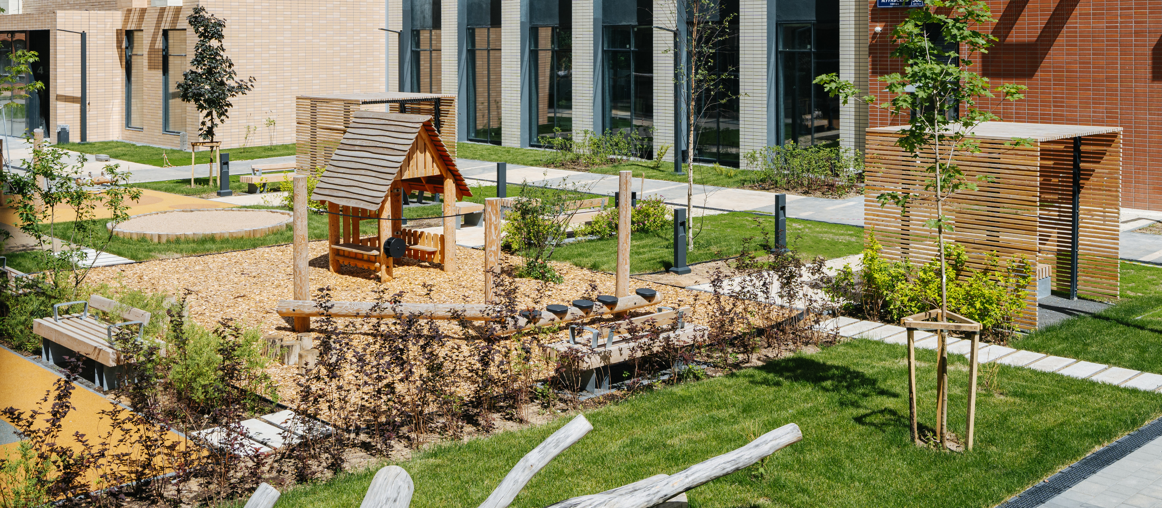 Во дворах — благоустроенные зелёные парки с местами для отдыха, детскими и спортивными площадками. Через квартал протянется широкий пешеходный бульвар для прогулок на свежем воздухе. На первых этажах домов работают магазины, кафе и полезные сервисы. А для владельцев автомобилей предусмотрены подземные паркинги.
