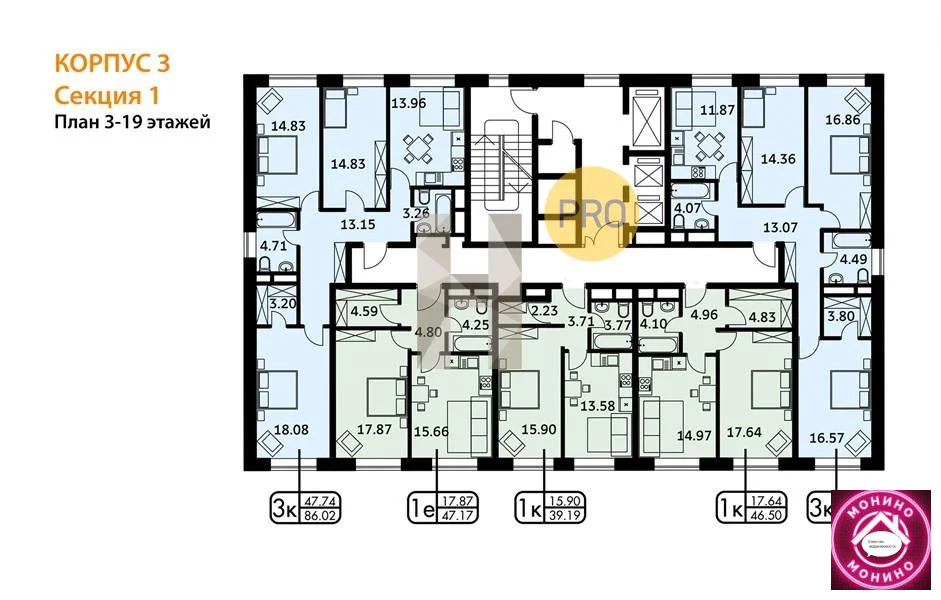 Квартира: 1 к 47,17 кв.м., 11 этаж в комплексе Городские истории, 3 очередь, корп.3, сдача: 4кв. , этажей: 19, адрес Внуковское п., Анны Ахматовой ул., , Застройщик: Центр-Инвест.