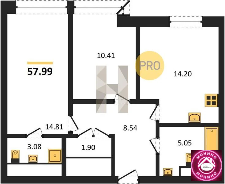 Квартира: 2 к 59,00 кв.м., 5 этаж в комплексе Квартал Герцена, 1 очередь, корп.1, сдача: 4кв. , этажей: 23, адрес 25-26 км МКАД ул., , Застройщик: Брусника.