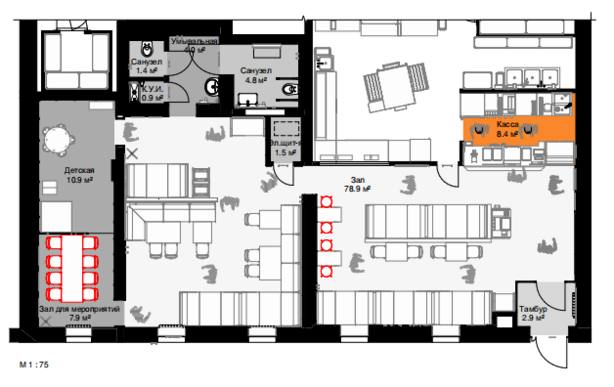 ==ЛОТ 224976 == ОТ СОБСТВЕННИКА, БЕЗ КОМИССИИ. Предлагается помещение для размещения объекта общественного питания, ранее использовавшееся под пиццерию "Додо Пицца". Помещение полностью оборудовано для деятельности в сфере пиццерийного бизнеса и имеет удовлетворительное состояние после проведения ремонтных работ.Планировка помещения включает три зала, кухню, подсобные помещения, холодильную и морозильную камеры, а также три санузла. Все помещения оснащены системами кондиционирования воздуха, приточной вентиляцией, системами видеонаблюдения и охранной сигнализацией.