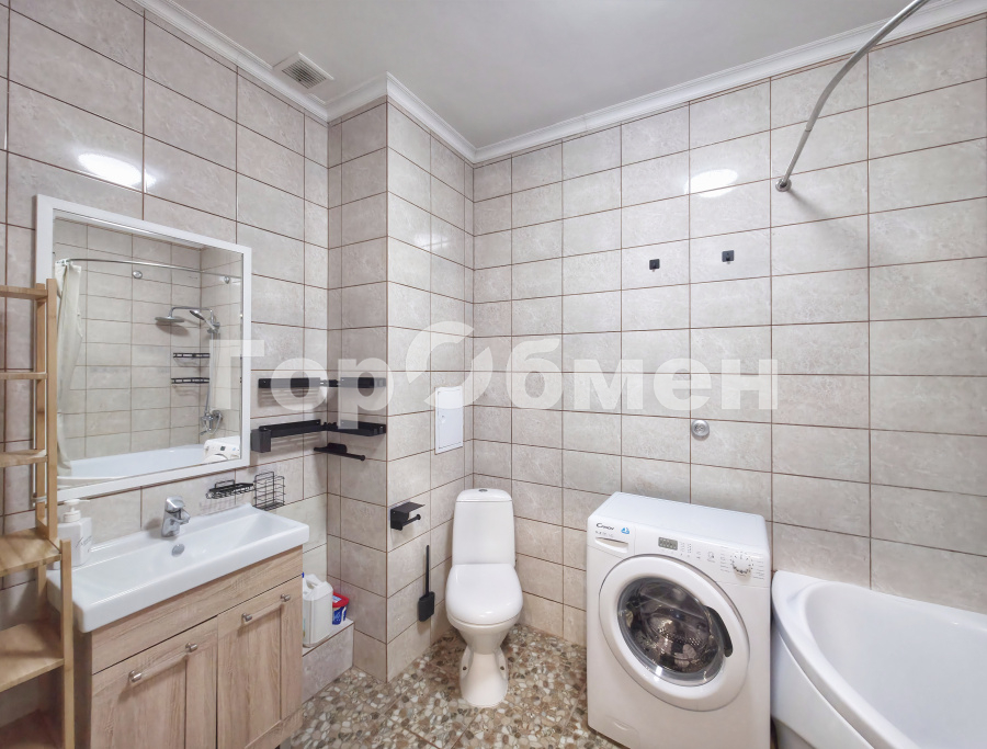 Имеется вся необходимая мебелью и техника: духовой шкаф, микроволновка, варочная панель, холодильник, посудомоечная машина, стиральная машина. Все продумано до мелочей, предусмотрено достаточное количество мест для хранения.