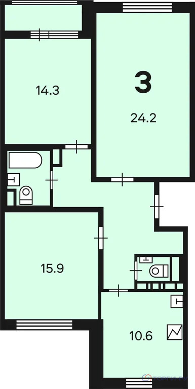 Количество комнат: 3