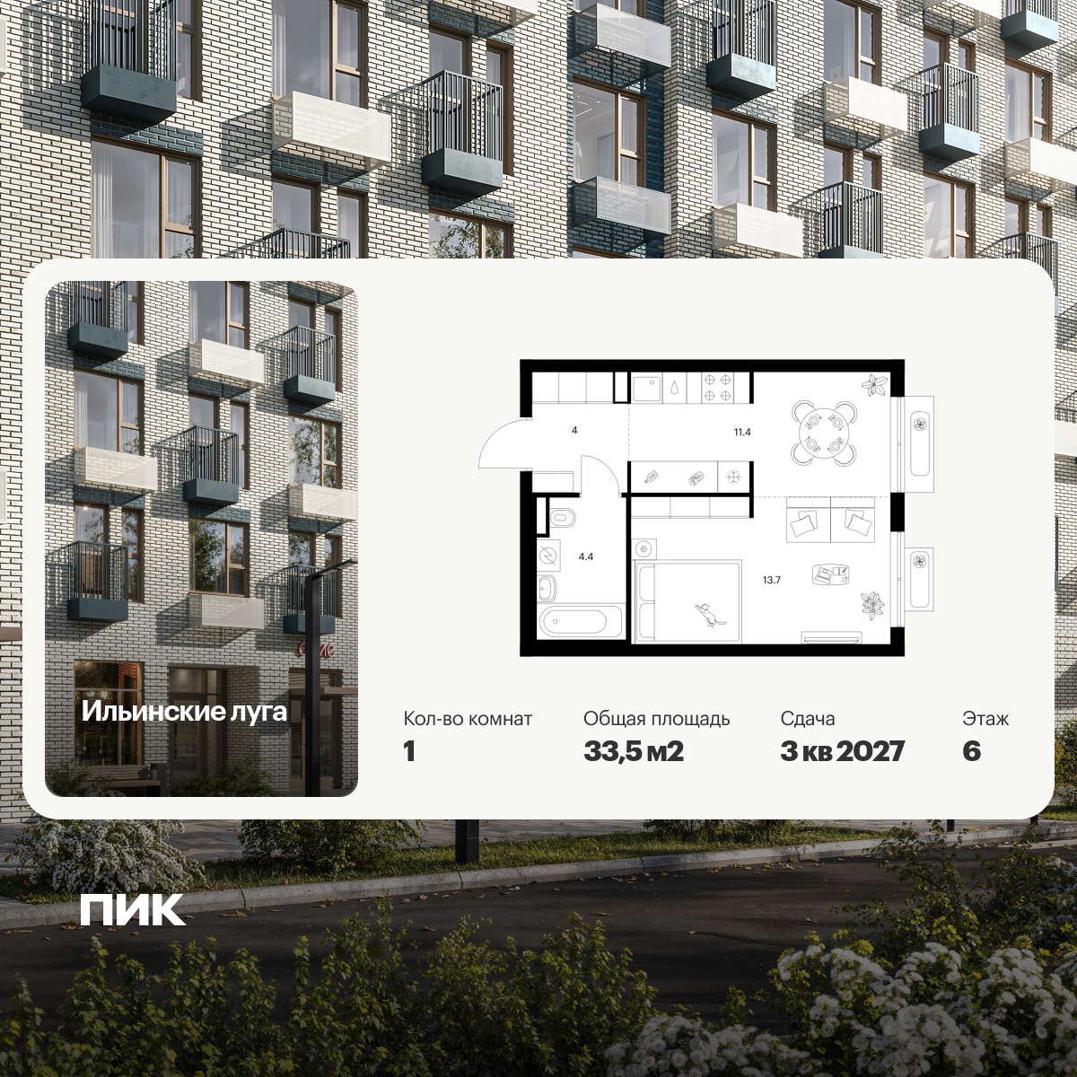 Купить 1к квартиру 33 м² в ЖК Ильинские луга