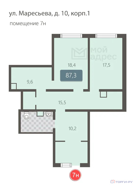 Нежилое помещение, 87,3 м | ЮВАО, р-н Некрасовка, ул. Маресьева, д. 10, корп. 1, этаж 1, помещение 7Н | Метро: Некрасовка (пешком 15 мин., транспортом 15 мин., расстояние 1.19 км)