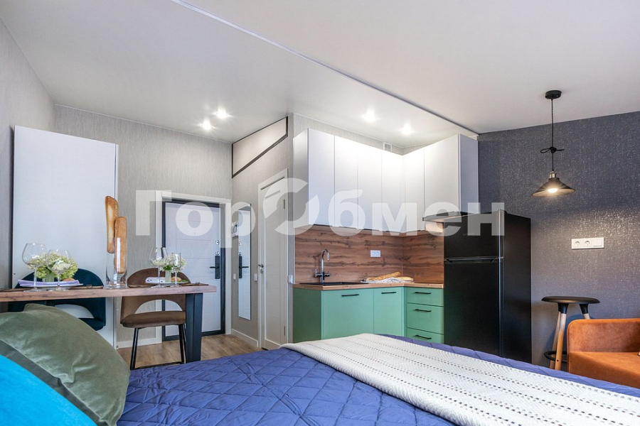 В студии никто не жил! На длительный срок сдаётся шикарная уютная студия! В студии выполнен дизайнерский ремонт, с использованием дорогих современных материалов и все продумано до мелочей! Установлена функциональная, качественная кухня, широкая двуспальная кровать с новым ортопедическим матрасом, кухонный стол-барная стойка, огромное удобное кресло, раскладывающееся в дополнительное полноценное спальное место, большой вместительный шкаф. Качественная входная дверь с электронным замком, который можно открыть не только ключом, но и кодом или отпечатком пальца. Оборудованы дополнительные места для хранения вещей. Новая бытовая техника - холодильник, варочная поверхность, вытяжка. В ванной комнате не только душ но и полноценная ванная, установлена стиральная машина. На кухне комплект необходимой посуды. На окнах жалюзи Blackout. Окна выходят на тихий двор.