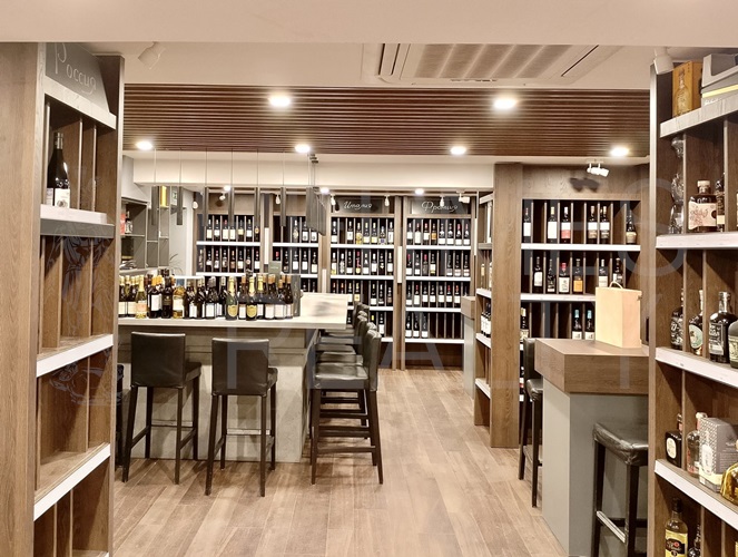 Второй зал: стеллажи, дегустационная/переговорная зона на 20 человек