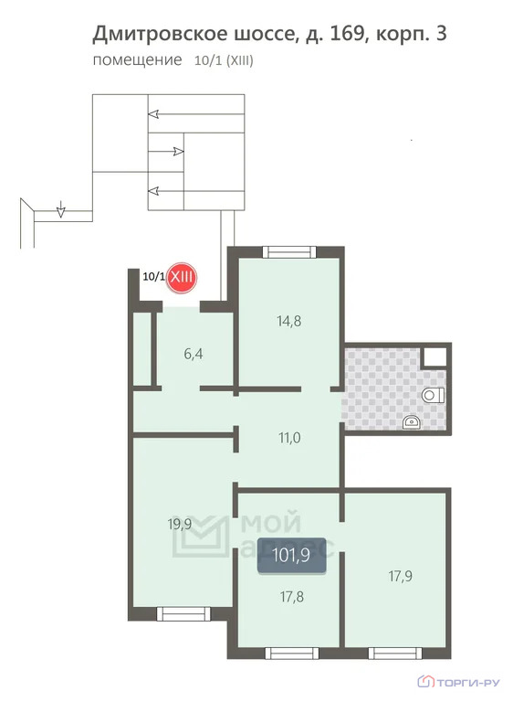 Нежилое помещение, 101,9 м | СВАО, р-н Северный, Дмитровское ш., д. 169, корп. 3, этаж 1, помещение 10/1 (XIII) | Метро: Физтех (пешком 19 мин., транспортом 19 мин., расстояние 1.3 км)