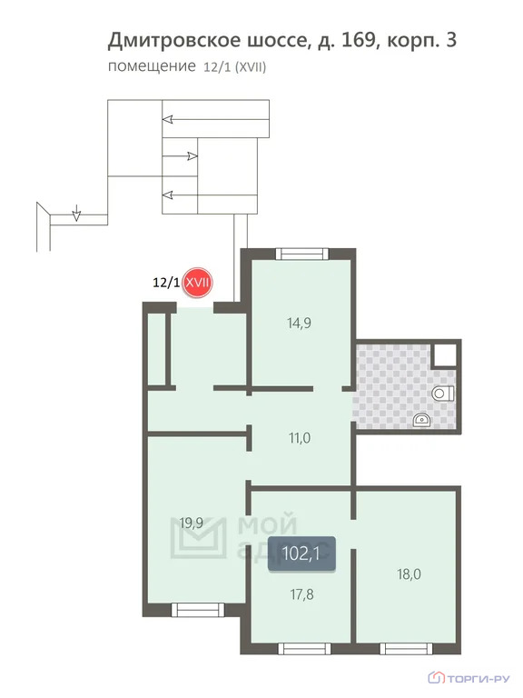 Нежилое помещение, 102,1 м | СВАО, р-н Северный, Дмитровское ш., д. 169, корп. 3, этаж 1, помещение 12/1 (XVII) | Метро: Физтех (пешком 19 мин., транспортом 19 мин., расстояние 1.3 км)