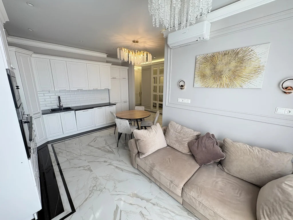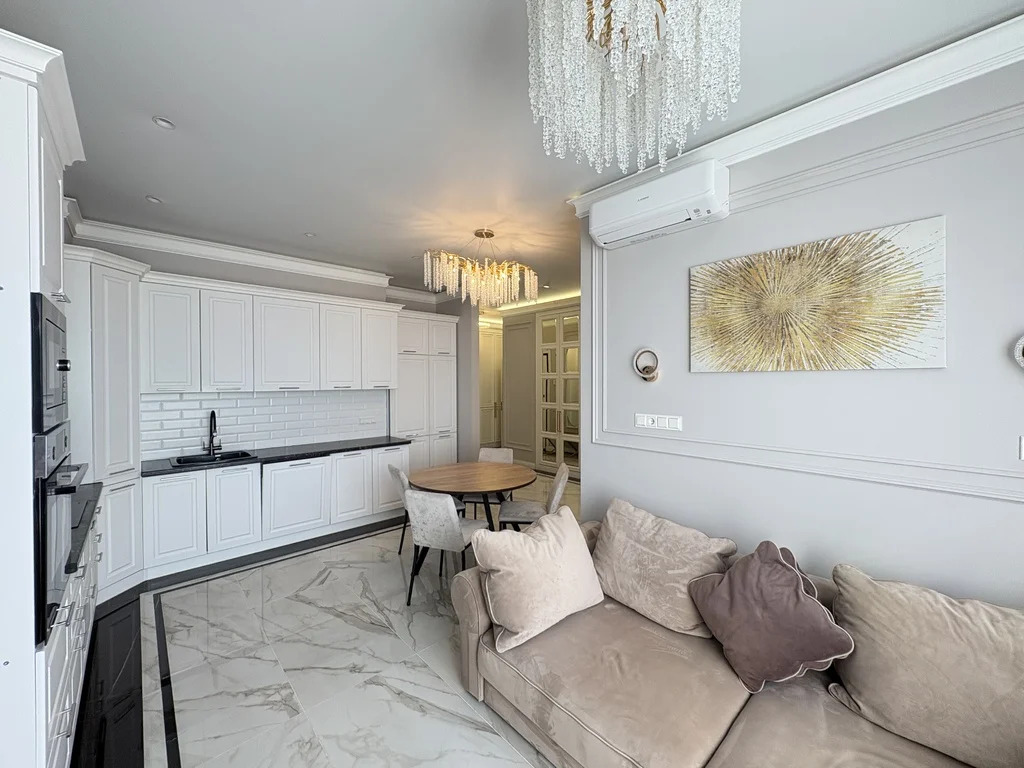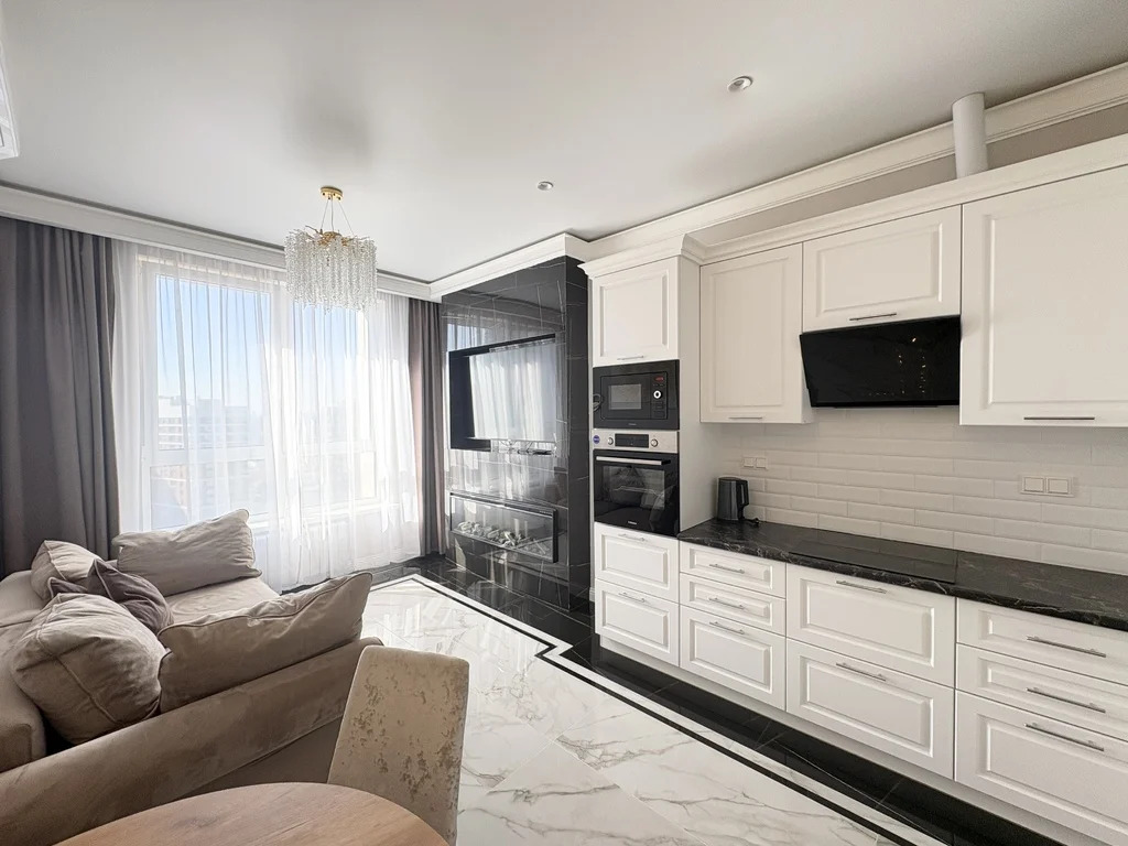 Отдельно спальня со своим с/у, отдельно комната с диваном и кухня-гостиная. Вместительные шкафы. 2 санузла. Есть все необходимое для проживания, на фото видна вся мебель и техника. Потрясающие виды в сторону реки, вид из окна представлен на фото. Комфортные и дизайнерские дворы.