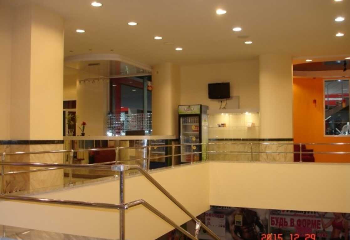 ==ЛОТ 225009 == ОТ СОБСТВЕННИКА, БЕЗ КОМИССИИ. Представительский центральный главный вход в здание, собственный подьезд, парковка, свободный вход, первая линия, многоэтажная жилая застройка. Витражное остекление, Расширенный набор помещений: салон красоты 52 кв., тренажерный зал 400кв., 3 зала для групповых занятий, сауны при раздевалках, 4 санузла, кухня с баром-кафе, мраморный холл для рецепции, массажный кабинет, раздевалки с умывальниками, помещение для уборки и инвентаря, два эвакуационных выхода дополнительно, антресоль 50 кв. м., которая не входит в оплату (бонус арендатору), потолки от 4 до 6. 5 метров, приточная и вытяжная вентиляция. Коммунальные платежи по тарифам города. Эксплуатационные расходы 25000 руб. /месяц содержание территориии, коммуникаций здания.