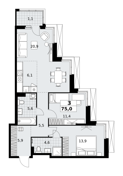 Купить 2к квартиру 56 м² в ЖК 1‑й Измайловский