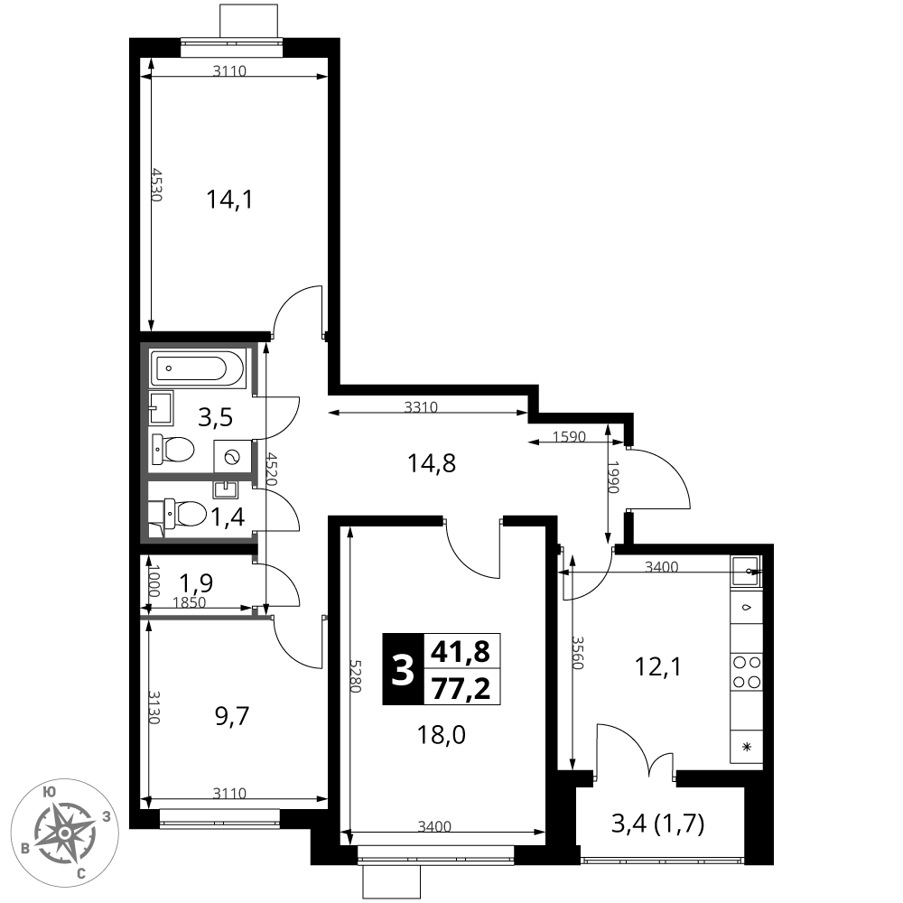 Главная Купить квартиру в Москве и МО 2к квартира 58 м² в ЖК Бархат