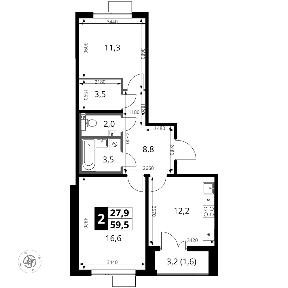 Купить 2к квартиру 58 м² в ЖК Бархат