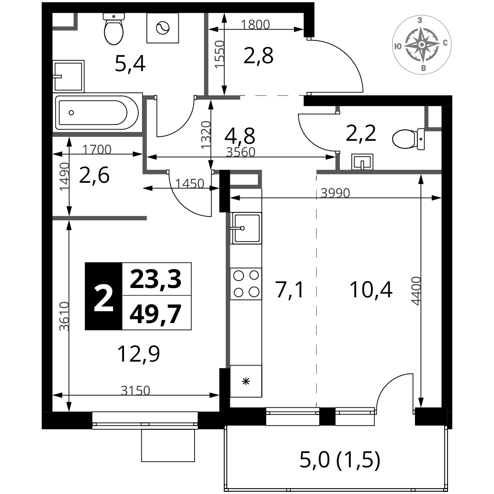 Главная Купить квартиру в Москве и МО 2к квартира 69 м² в ЖК Триумф