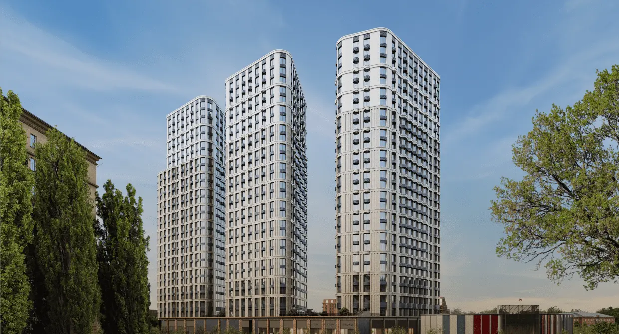 Жилой комплекс бизнес-класса «Среда на Лобачевского» строится на западе Москвы, в районе Очаково-Матвеевское, создавая кластер для комфортной жизни в мегаполисе. Визитная карточка проекта — три одинаковые башни сложной формы, которые команда проекта называет «Три сестры». Эти башни выделяются фасадами, облицованными ригельным кирпичом аквамаринового цвета, что привлекает внимание и делает здания уникальными на фоне окружающей застройки. Центральное место в ансамбле занимает башня высотой 27 этажей, объединяя архитектурный комплекс в единое целое.«Среда на Лобачевского» предлагает продуманный современный экстерьер, функциональные планировки внутри, приватные пространства и разнообразные досуговые зоны для каждого члена семьи. Этот жилой комплекс создан для тех, кто ценит комфорт, стиль и высокое качество жизни в динамичном мегаполисе.