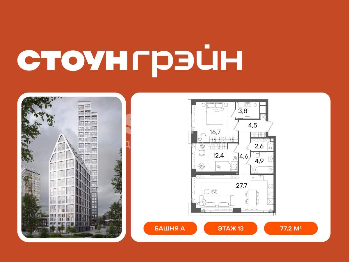 Купить 2к квартиру 72 м² в ЖК Кутузов GRAD II