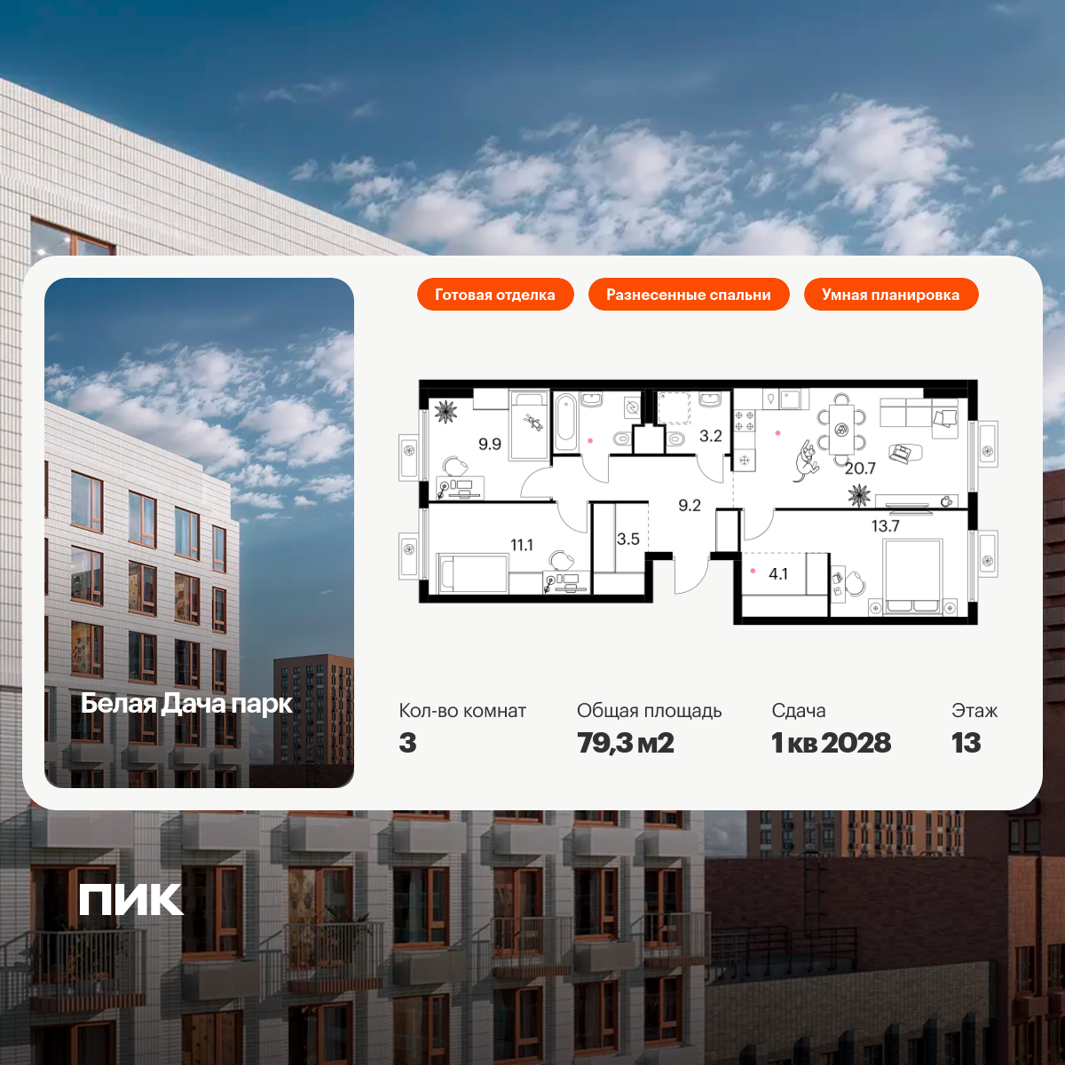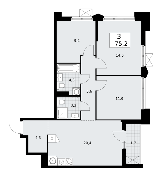 Купить 2к квартиру 79 м² в ЖК Солнечный парк