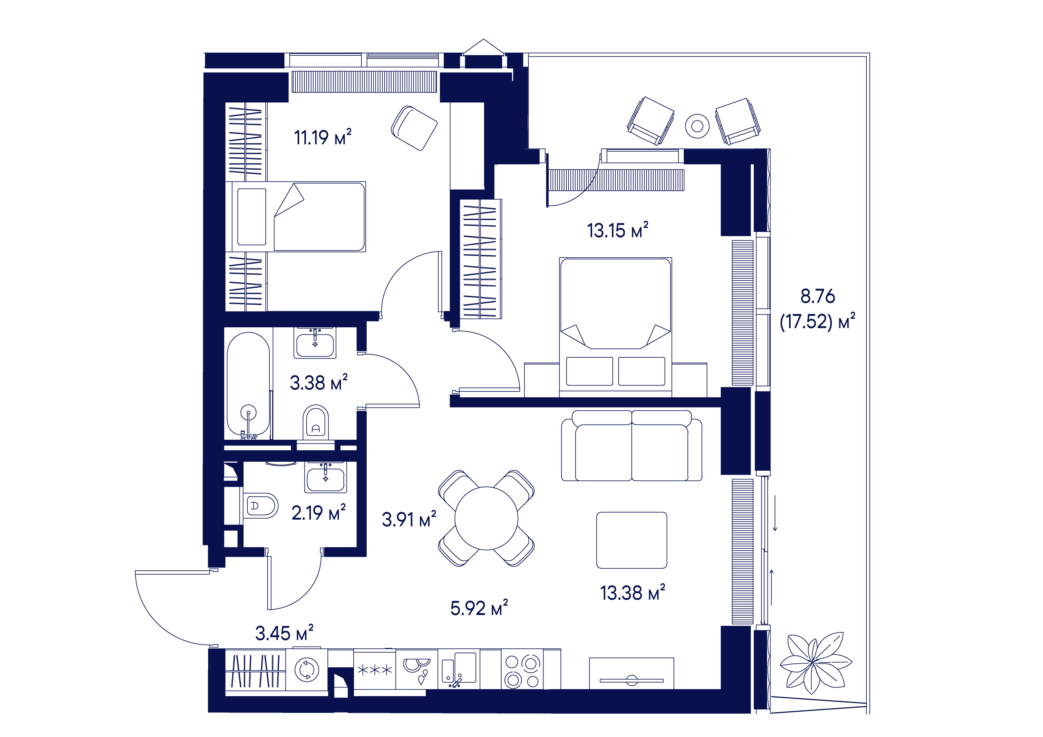 1к квартира 57 м² в ЖК Клубный город на реке Primavera (Примавера)