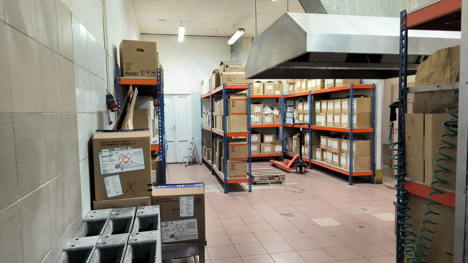 Большая площадка из асфальта около склада может быть использована для парковки, хранения.