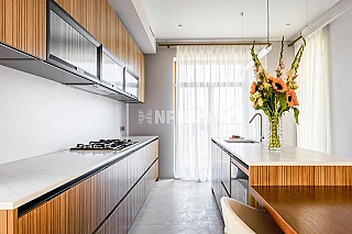 На первом этаже интерьер оформлен в светлых оттенках, создающих легкость и уют. Второй уровень без отделки позволяет реализовать индивидуальные дизайнерские решения. В коттедже разместили 4 спальни, кабинет, гостиную, переходящую в зону кухни-столовой.
