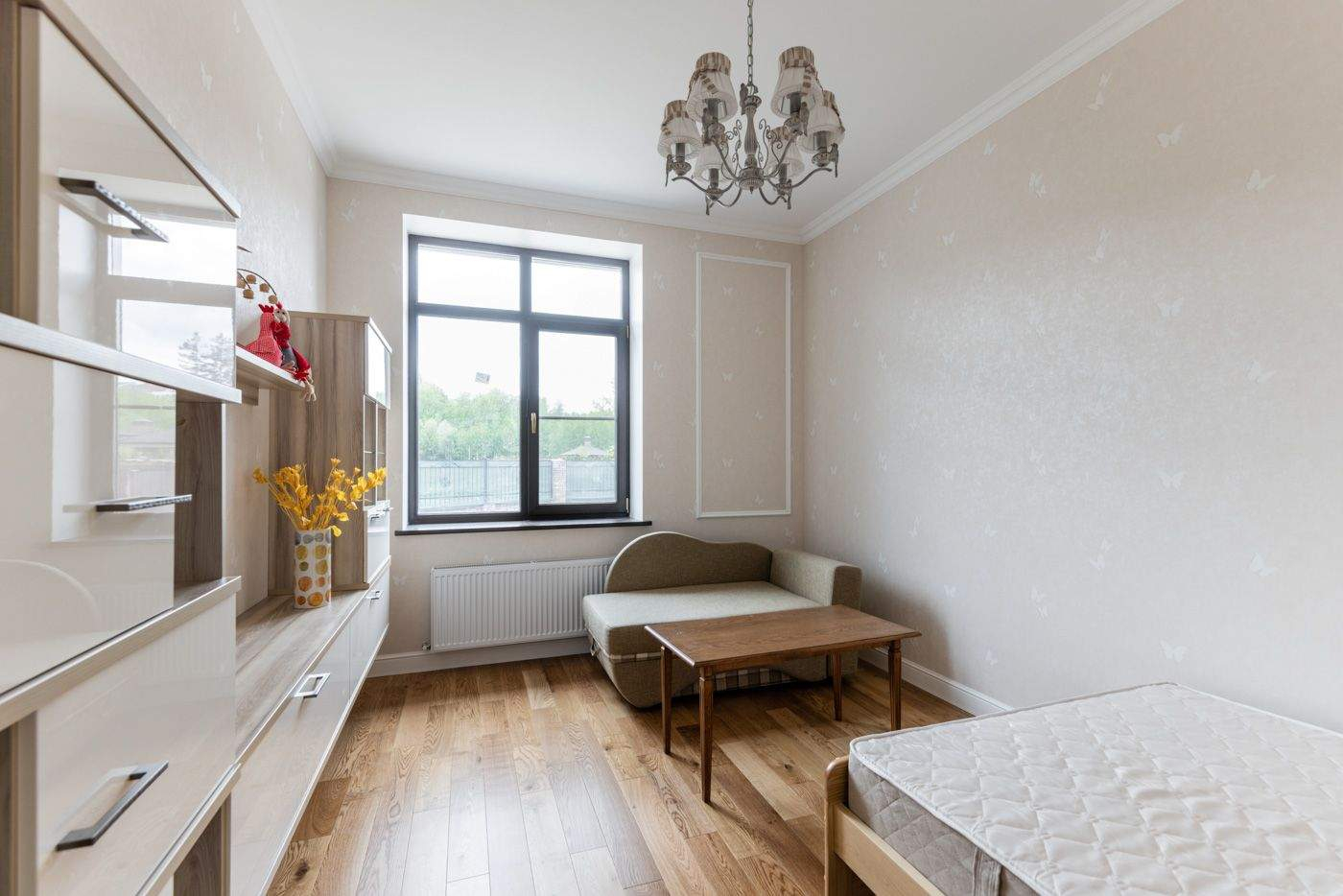 На участке засеян газон, вымощены брусчаткой дорожки и построен гостевой дом с отделкой и мебелью.