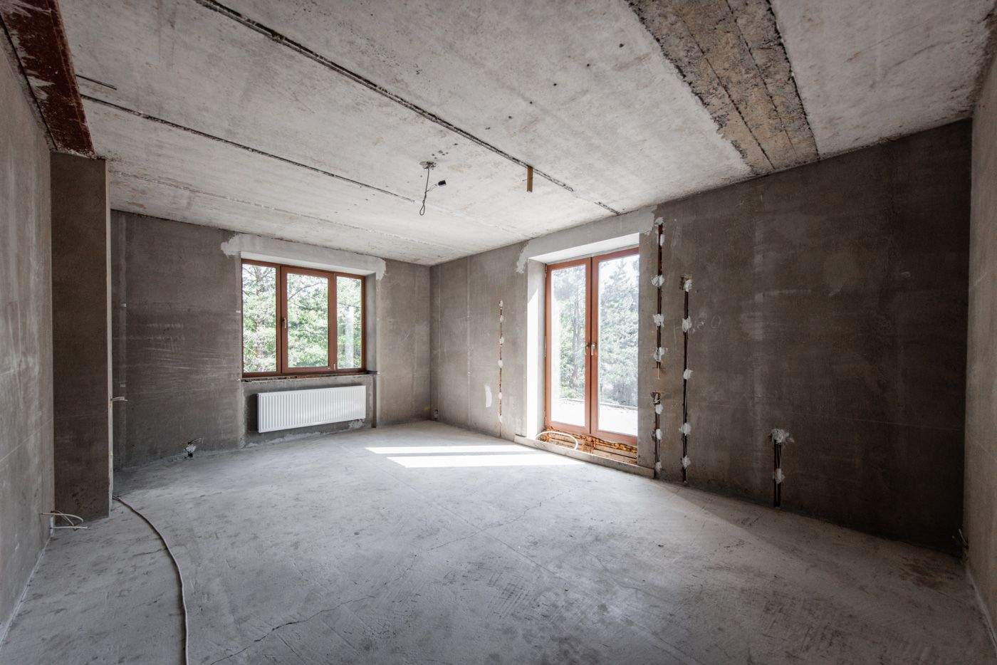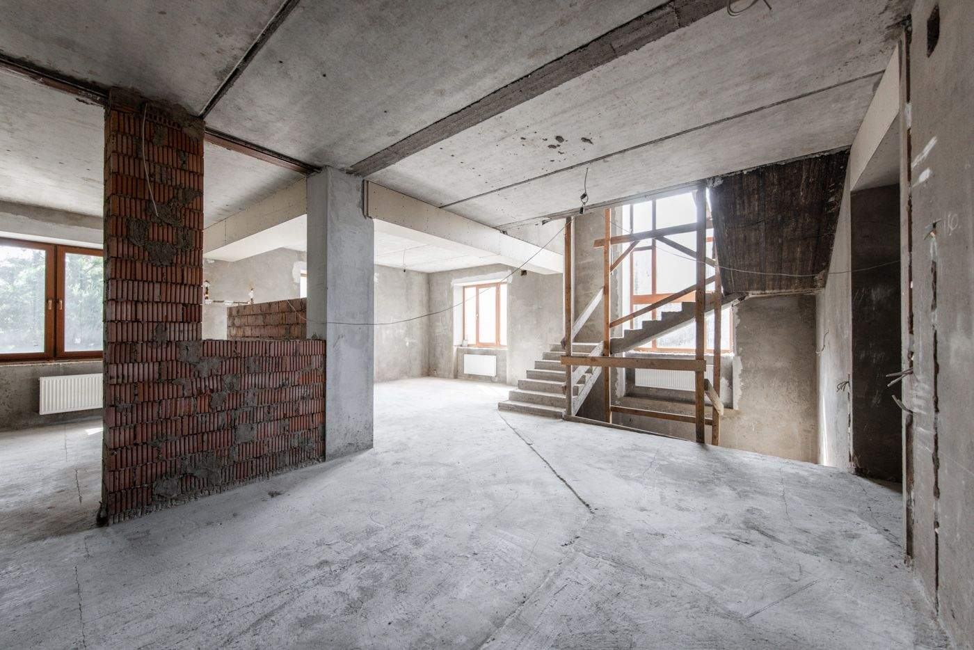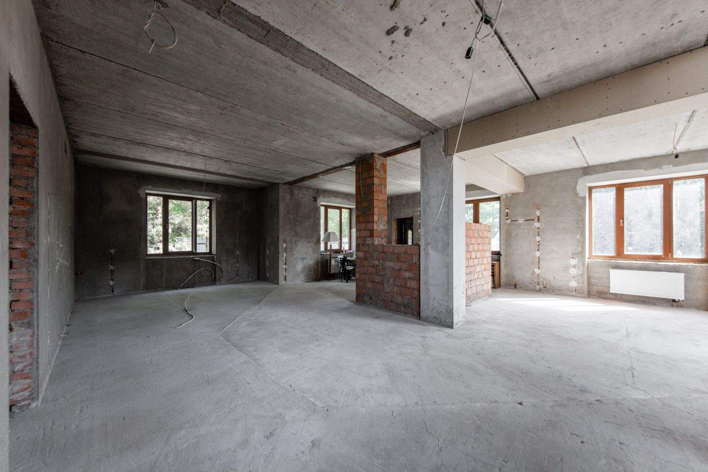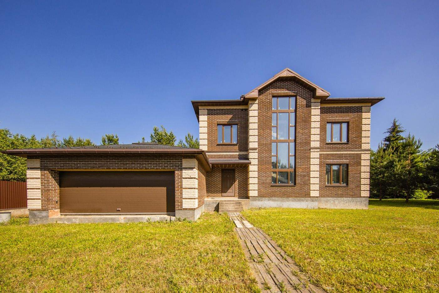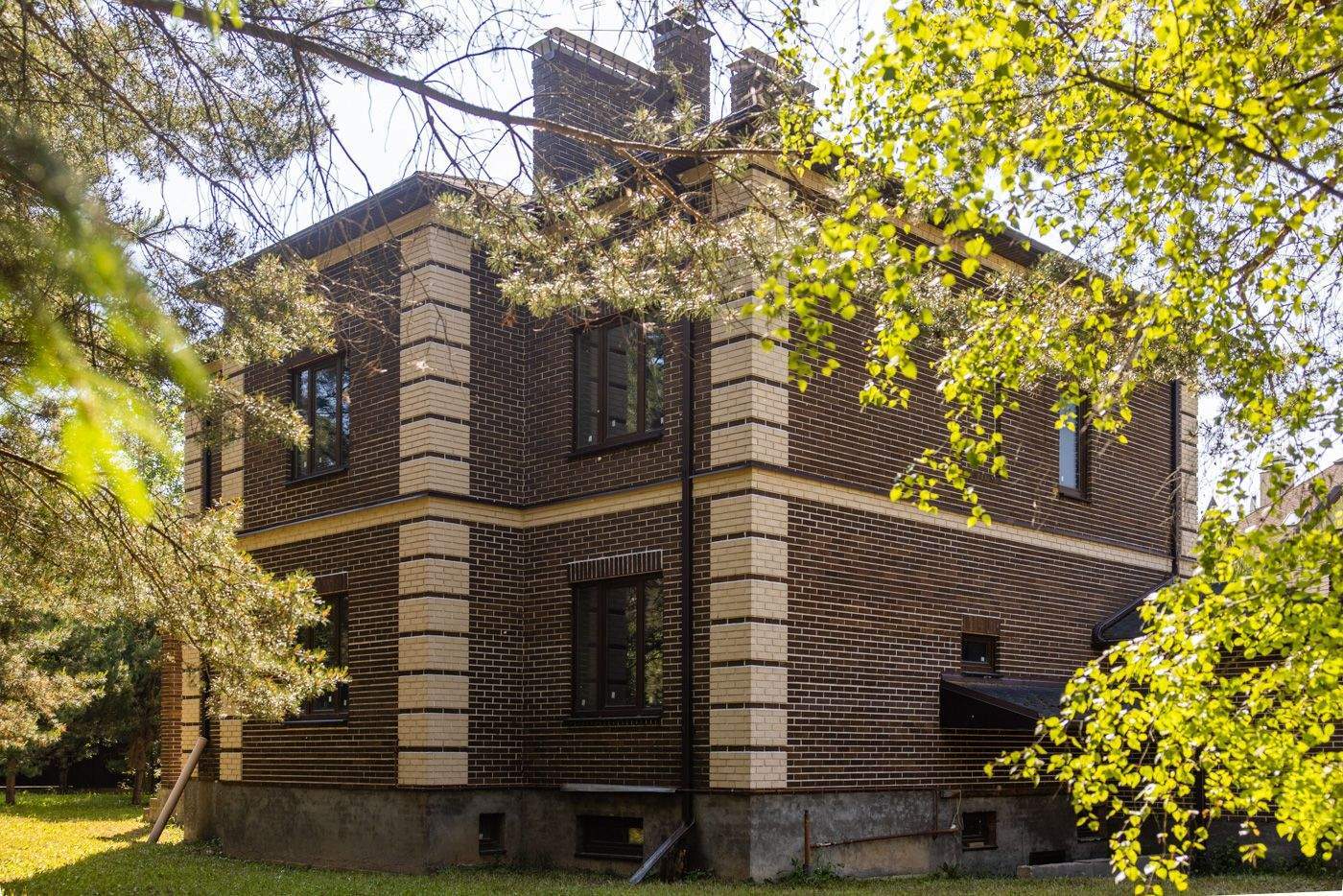 Загородный дом площадью 500 м расположен на полевом участке 16,5 соток. Фасад здания облицован коричневым клинкерным кирпичом. В коттедже с отделкой whitebox осталось лишь выбрать финишные покрытия и выполнить меблировку.