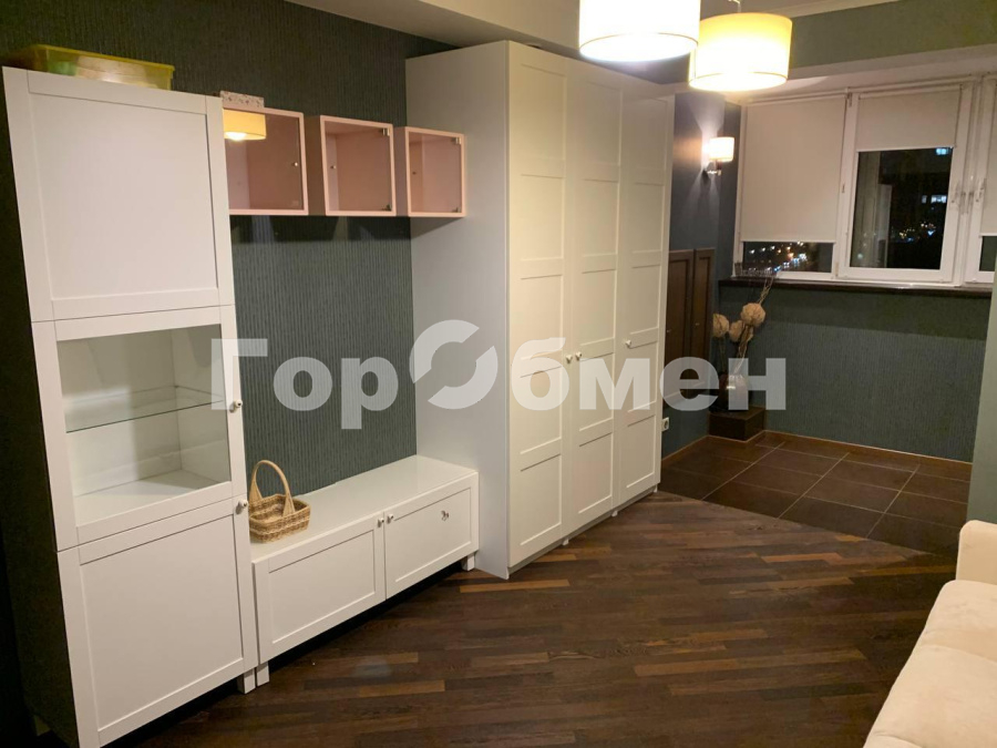 В другой - раскладывающийся двухспальный ортопедический диван, вместительный шкаф и оборудованное рабочее место.