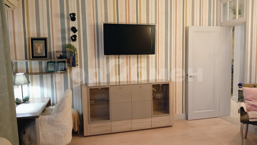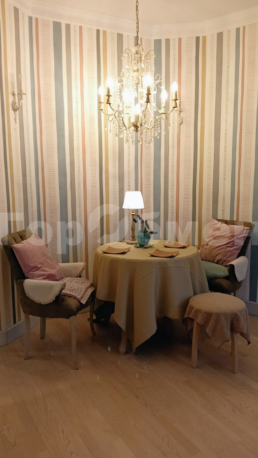 В квартире сделан качественный ремонт с использованием только лицензированных материалов. В комнатах эксклюзивная мебель из массива, паркет, авторские шторы. В гостиной обеденная группа с резными стульями, шкаф-купе, диван и кресло для отдыха, выход на остекленный балкон…