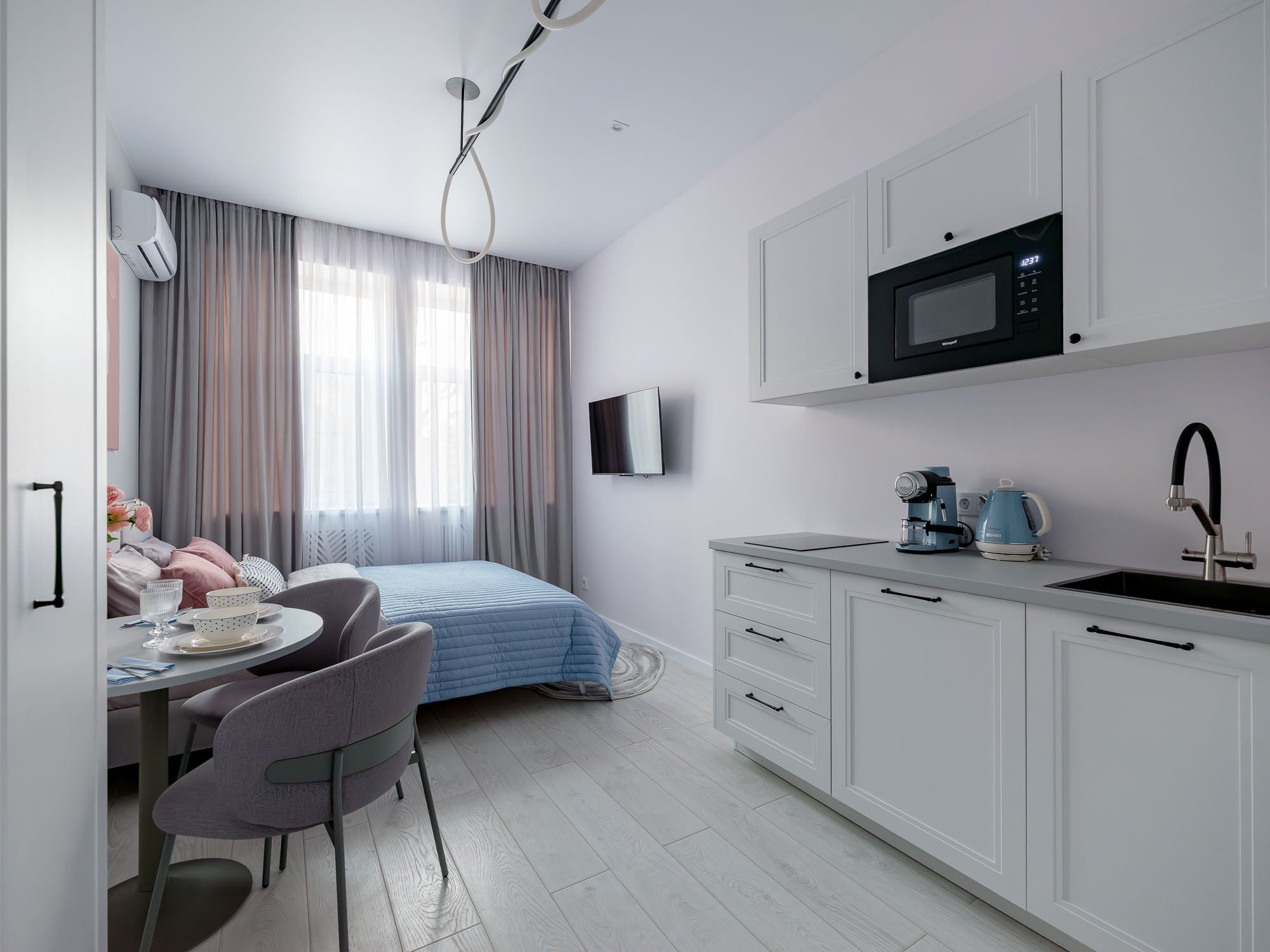 Студия 21 м2 в историческом центре Москвы. Улица Большая Татарская, дом 20, строение 2. Выполнен новый дизайнерский ремонт с полной заменой всех коммуникаций. Высокий уровень шумоизоляции — 62 Дб (уровень банковских переговорных). Дом расположен внутри Садового кольца, в тихом районе, пешая доступность метро.