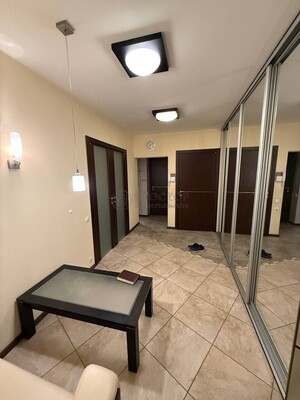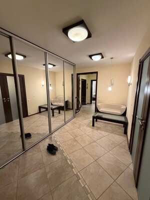 В квартире высокие потолки, 3 кондиционера, теплые полы, 2 застеклённые лоджии, 2 больших шкафа-купе и гардеробная комната. Мягкая мебель, кухонная техника, стиральная машина.