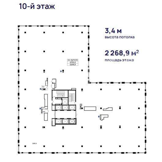 Площадь 10 этажа: 2268.9 м2