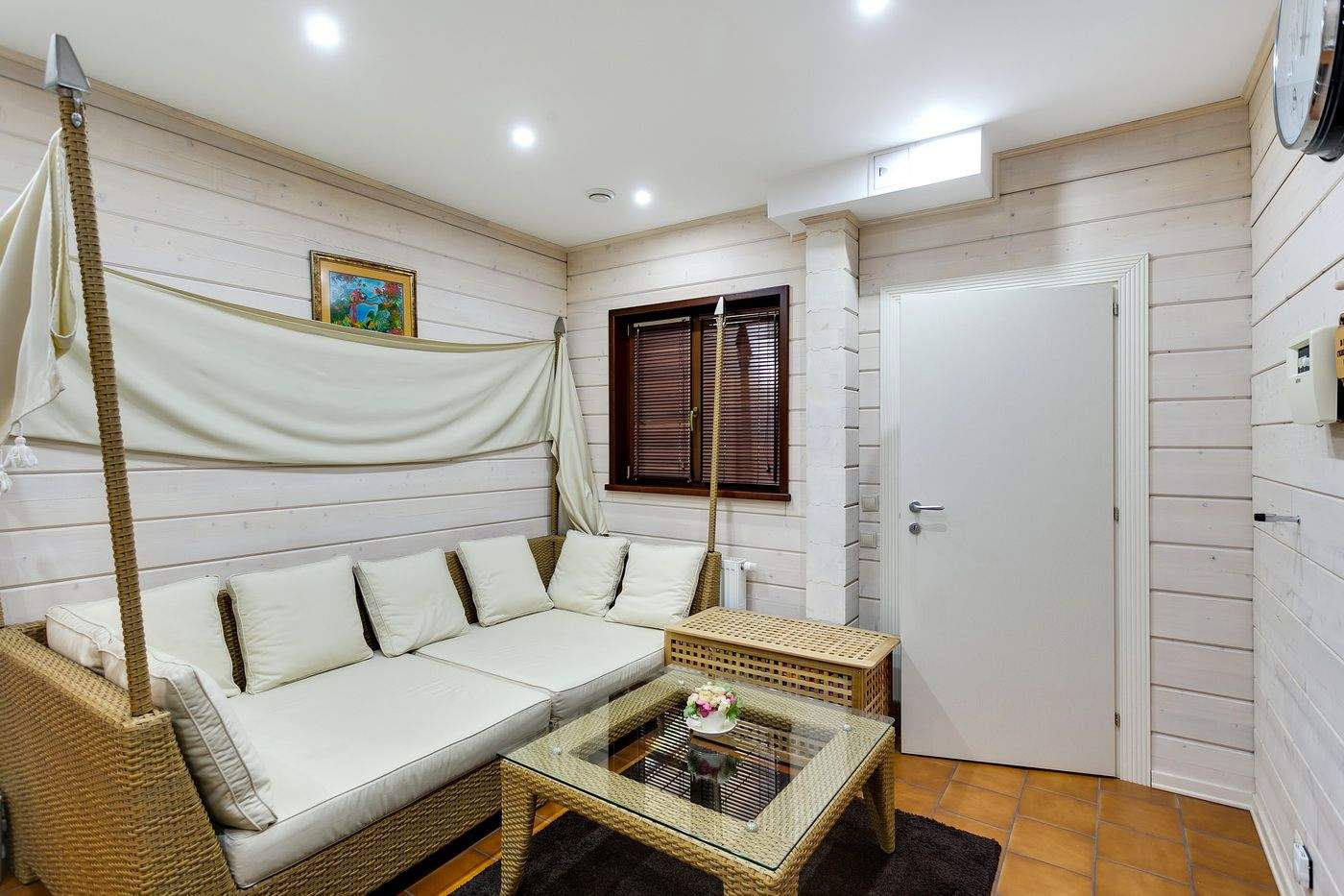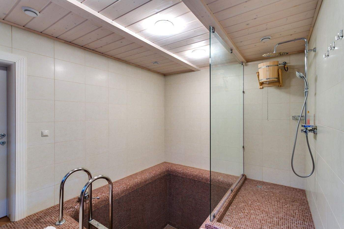 1 этаж: просторный холл, гостевой санузел, гардеробная, кабинет с санузлом, гостиная со вторым светом и выходом на участок, двусторонний камин, мягкая зона с ТВ, столовая с выходом на просторную, крытую веранду, кухня; SPA-зона с выходом на патио: сауна, массажная, душевая, кладовая; Постирочная, гараж с мойкой на две машины;