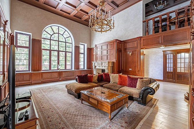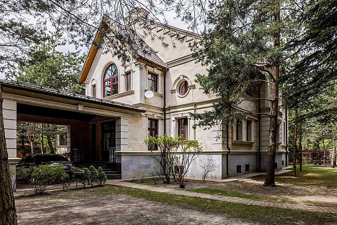 Борки-4. Вашему вниманию предлагается новоепредложение в камерном, охраняемом коттеджном поселке. Удобная транспортная развязка. Дом в стиле современной классики на лесном участке. Так же есть отдельный дом для персонала, дом охраны и зона барбекю. Внутреннее убранство основного дома напоминает английскую классику. В отделке фасада и интерьеров использованы дорогие породы дерева, натуральный камень, тканевые обои