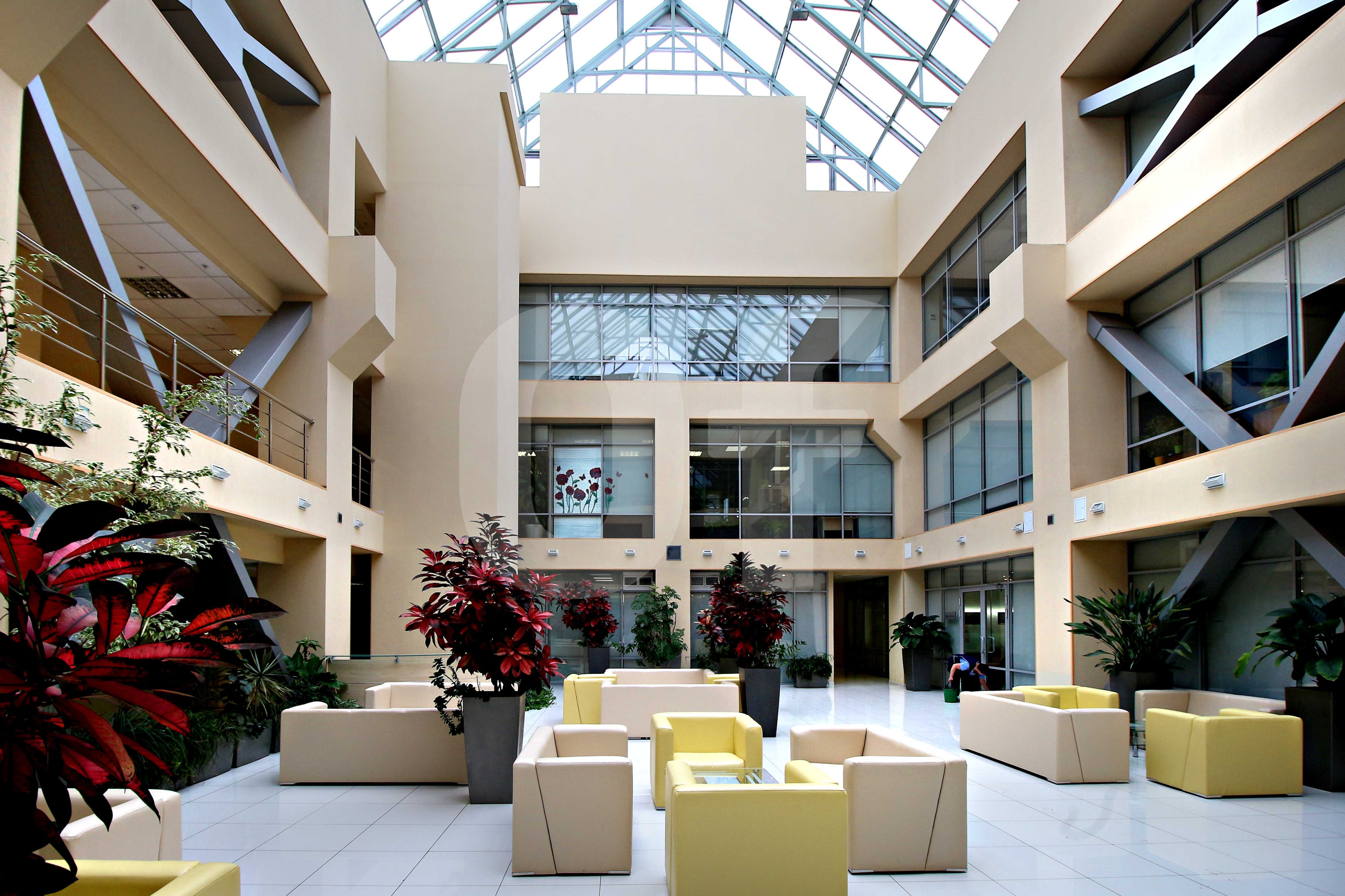 Наземная парковка на 150 мест, столовые и кофейни, торговые автоматы, спортивные тренажеры.