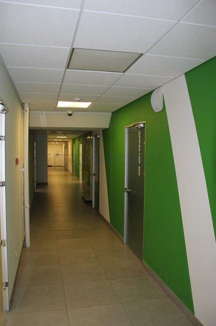 Помещение с функциональной смешанной планировкой. Планировка офиса включает кабинеты, опен-спейсы, 3 блока санузлов, серверную комнату, 3 кухни и переговорные комнаты. На этажах оборудованы кофе-поинты с мокрыми точками.