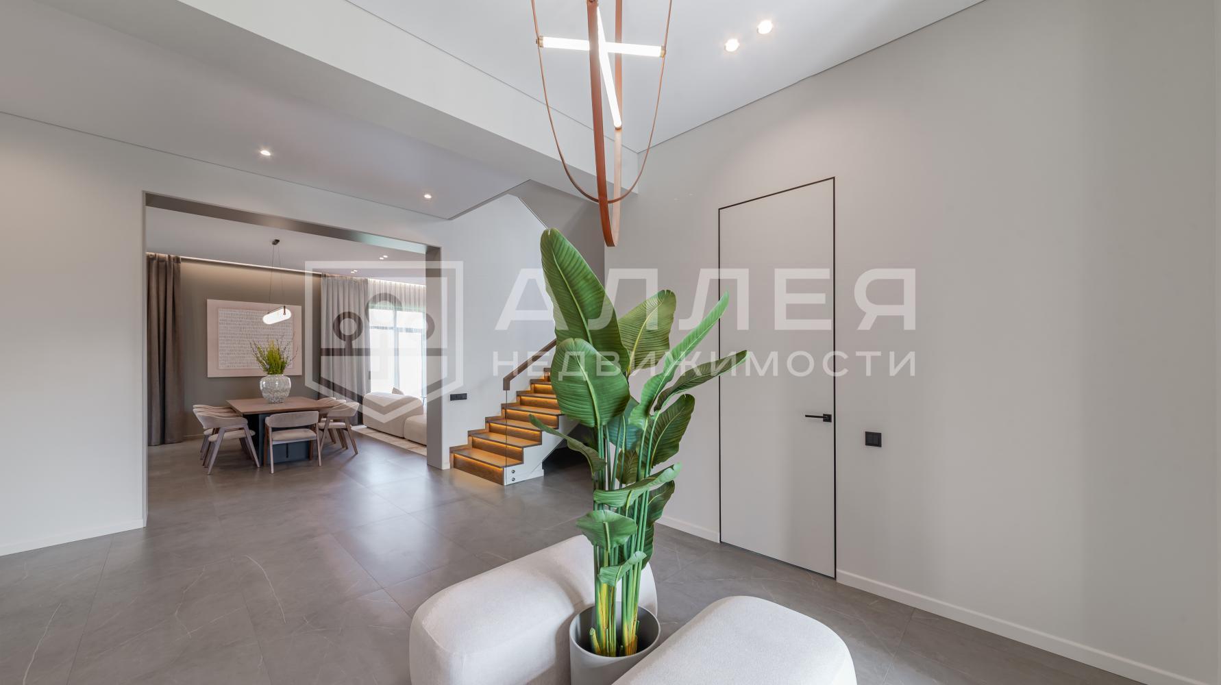 Дом с новой отделкой. Полностью меблирован и готов к проживанию, не требует вложений. Сделана удобная современная планировка. Есть спальня на первом этаже для гостей или родителей, кинотеатр, кабинет, зимний сад, постирочная, в мастер - спальне отдельный санузел и гардеробная. Установлены водяные теплые полы и кондиционеры. Использованы дорогие отделочные материалы и премиальная техника.