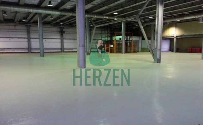 Ровный бетонный пол с антипылевым покрытием.
