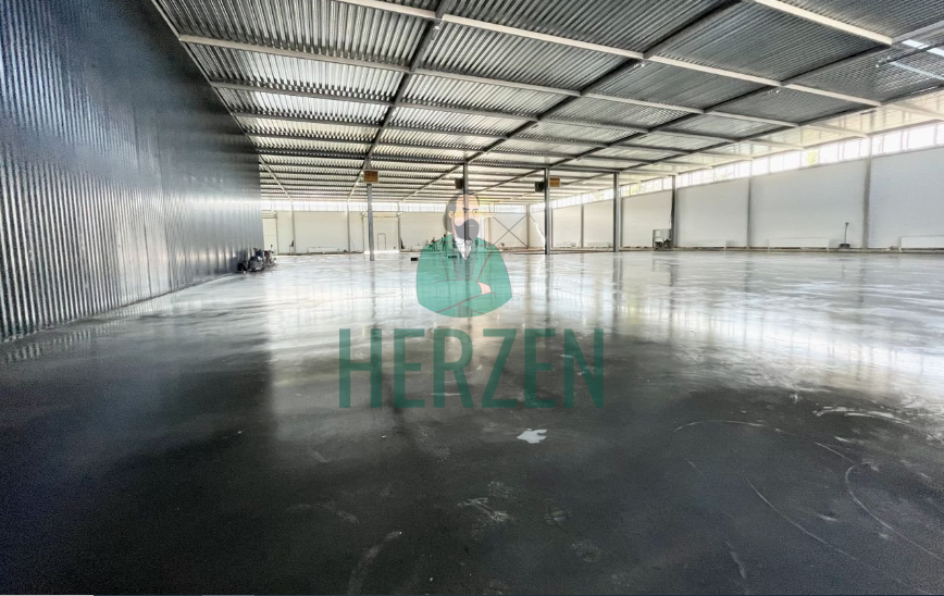 Ровный бетонный пол с антипылевым покрытием.