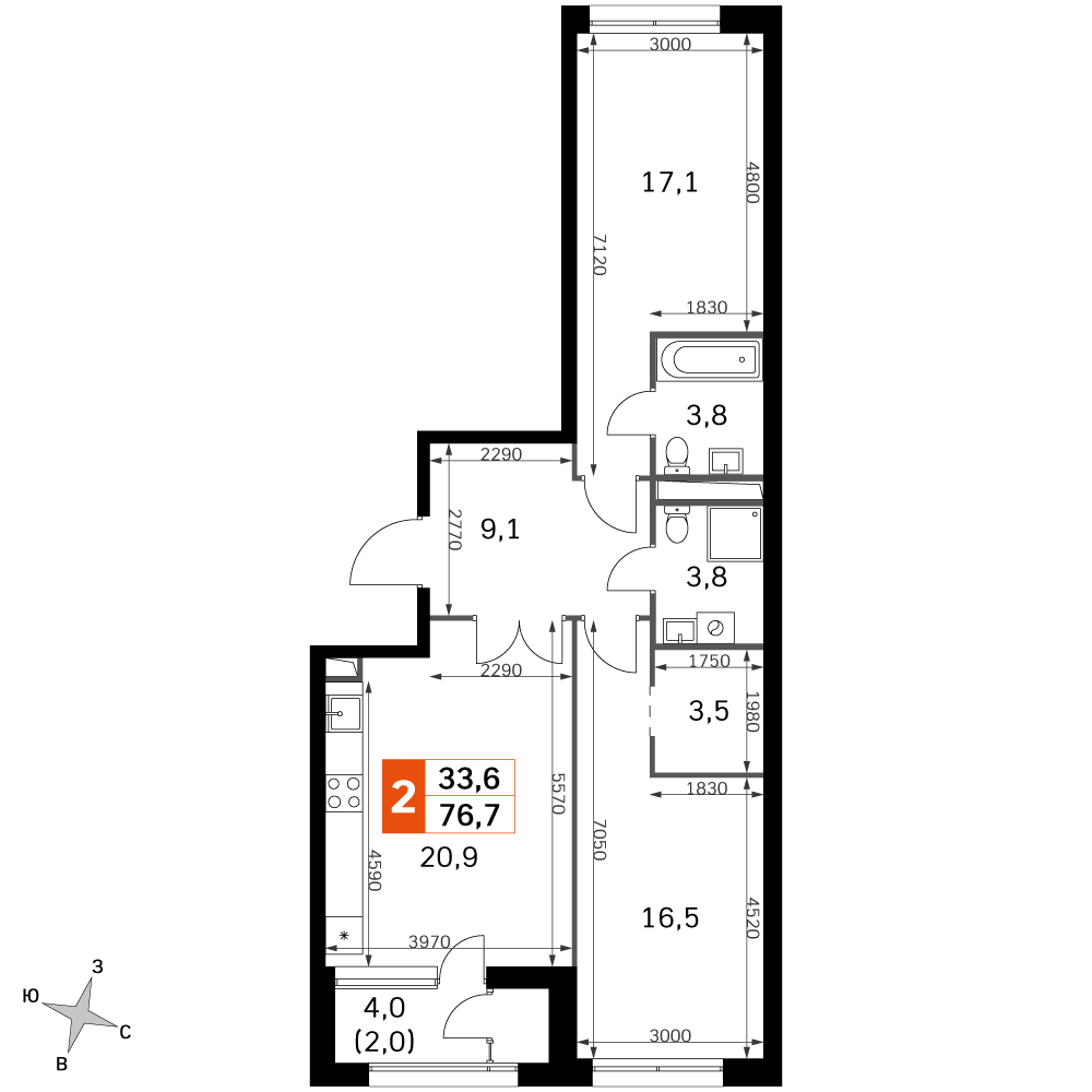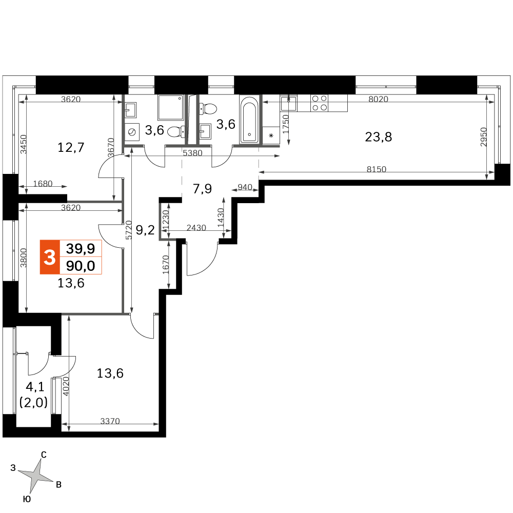 • Три комнаты — легко распределить под спальню, детскую/кабинет или гостиную. Каждая комната обособлена.