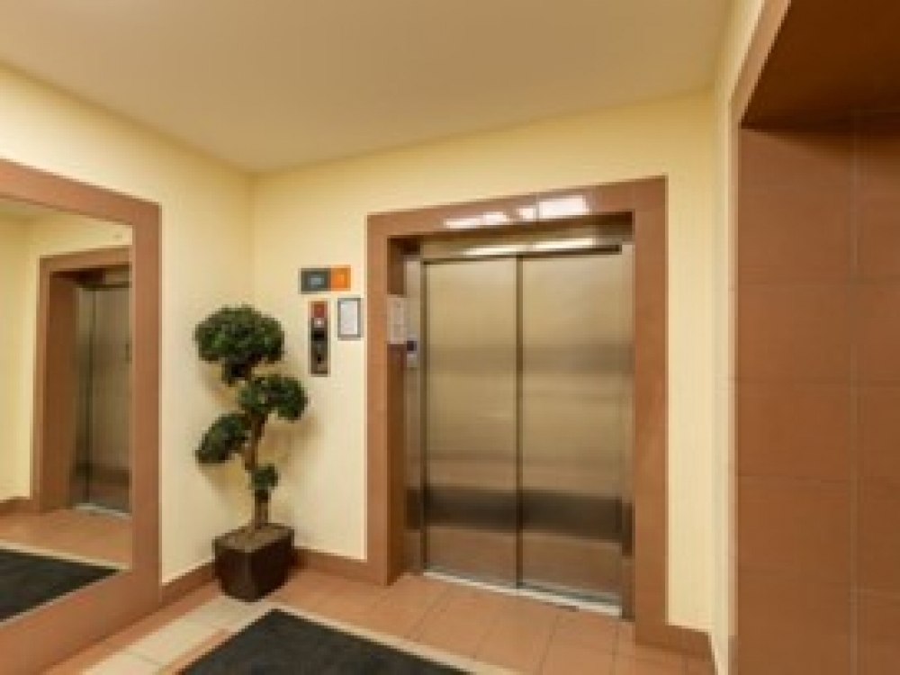 . Два пассажирских лифта, один грузовой лифт, четыре входа, три ресепшен.