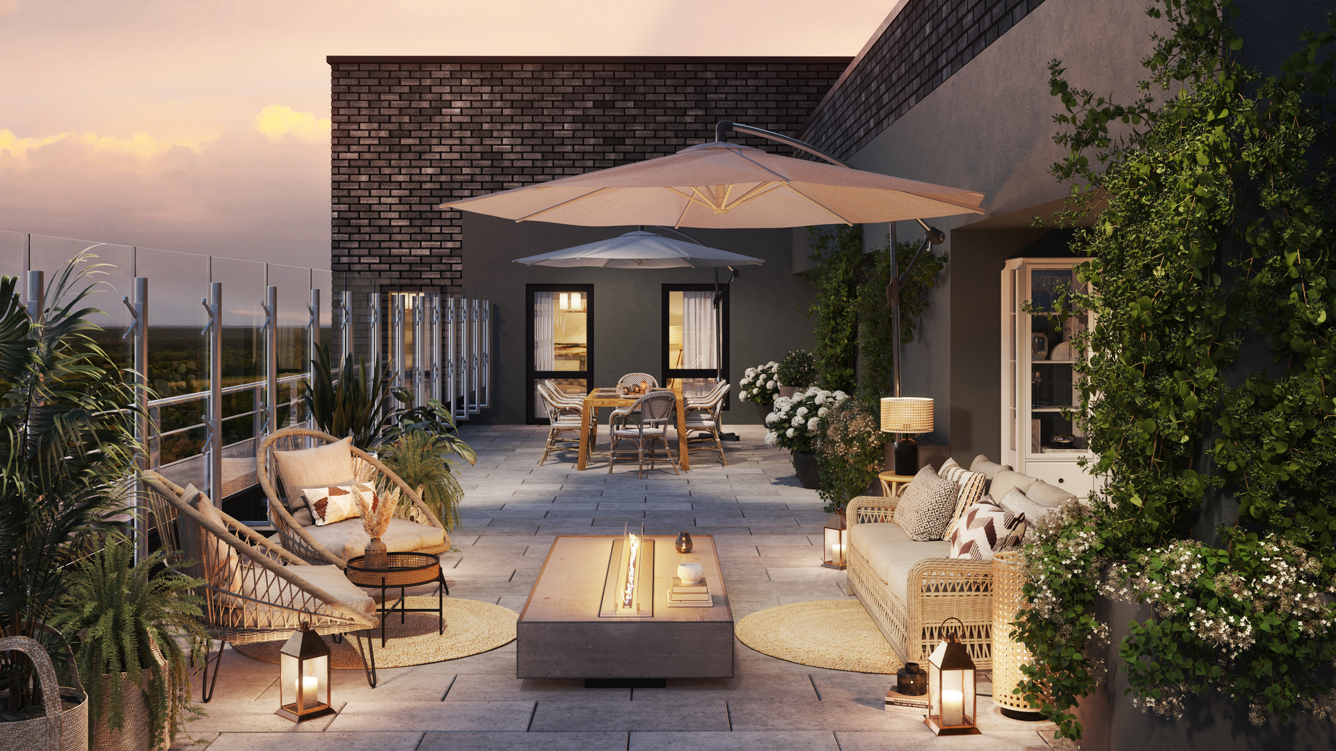 В районе будет реализовано уникальное благоустройство в стилистике средиземноморского сада (концепция архитектурного бюро MAParchitects): собственный парк; фруктовые, декоративные и вечнозелёные деревья, вертикальное озеленение, живые изгороди, кустарники и цветники; амфитеатр; двор-патио с геопластикой; детская площадка с горками и скалодромом. На первых этажах жилых домов откроются магазины, кафе с летними террасами, фитнес-залы, детские развивающие центры, салоны красоты и другие бытовые сервисы.