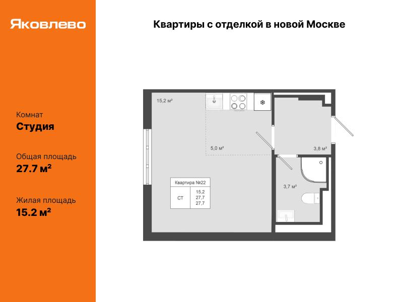 Главная Купить квартиру в Москве и МО 1к квартира 33 м² в мкр Купелинка (д Сапроново)