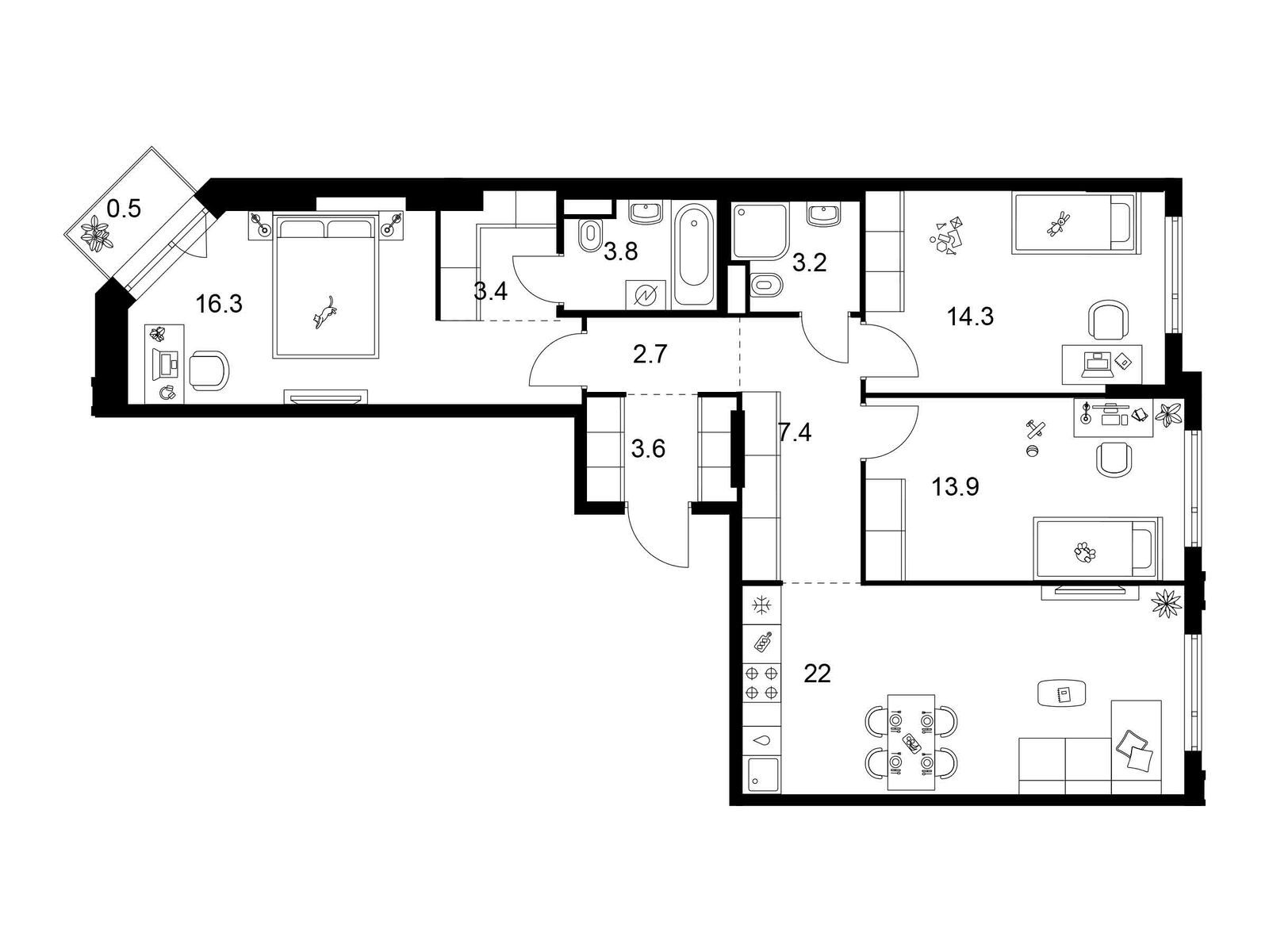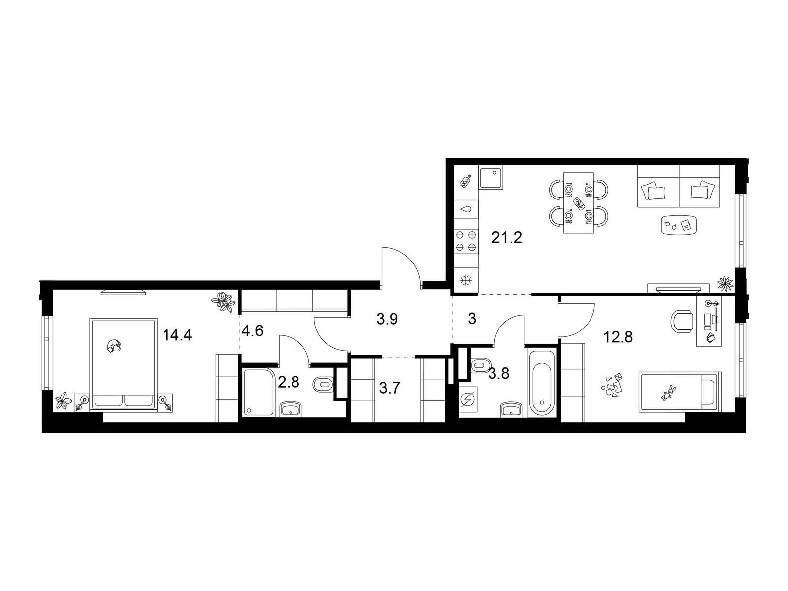 Купить 3к квартиру 71 м² в ЖК Южные сады