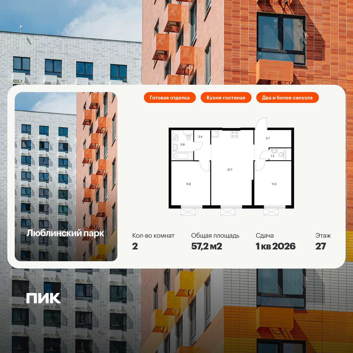 Купить 3к квартиру 58 м² в ЖК Южные сады