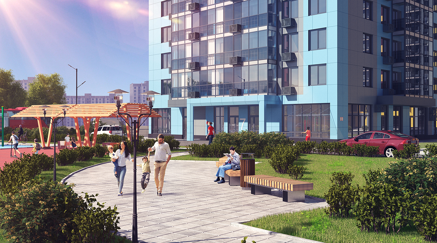 «Квартал Мит» — современный проект в районе Митино на северо-западе Москвы. Корпуса «Серии плюс» с продуманной архитектурой гармонично вписаны в природный ландшафт, а уютные дворы-парки и общественные пространства станут местом тёплых встреч с семьёй и друзьями. На территории проекта появятся торговые аллеи с магазинами и кафе, а рядом с кварталом — школа и два детских сада.Сочетание природных оттенков: терракотовые, белые и графитовые фасады корпусов создают сдержанный фон для башни-доминанты цвета красной охры.Первые этажи с панорамными окнами формируют сцену для яркой городской жизни. Здесь появятся пространства для прогулок и отдыха, летние террасы, рестораны и коммерческие помещения.