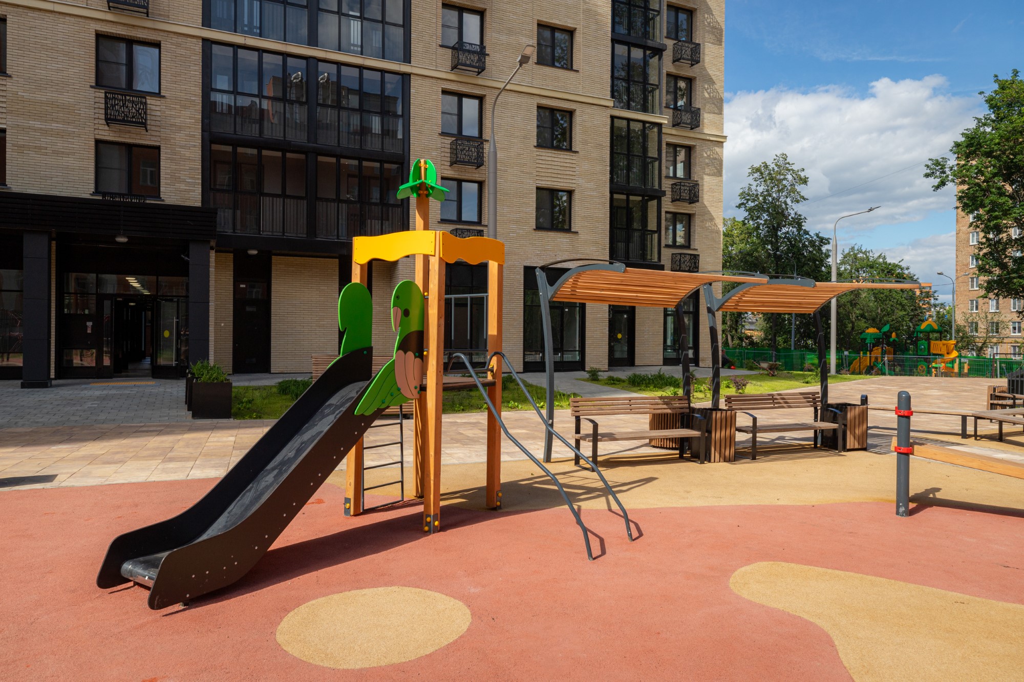 Подъезд:просторныйсквозной проходколясочнаяпомещение для консьержалифтдомофонвитражное остеклениеДвор:детские площадки: 2спортивные площадки: 1площадки для отдыха: 1двор без машинозеленениекамеры видеонаблюденияосвещение