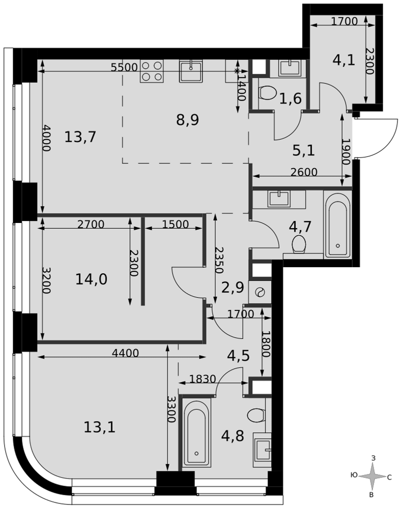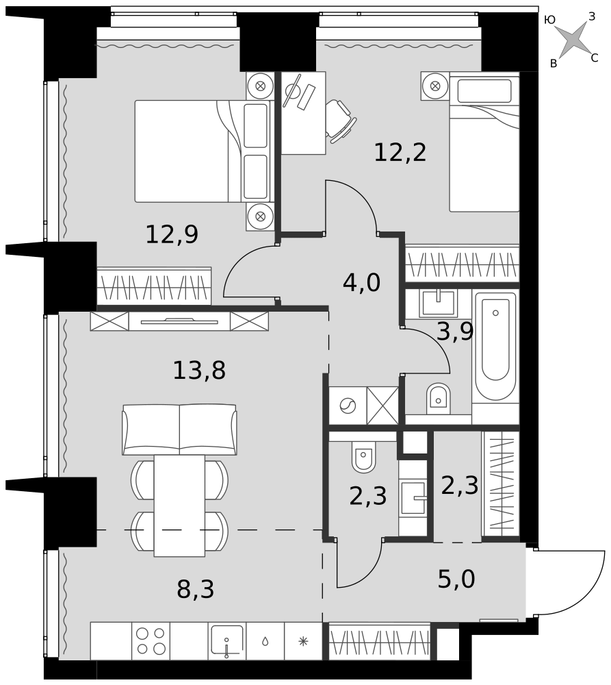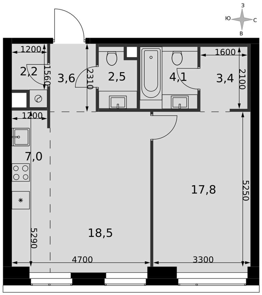 Купить 2к квартиру 63 м² в ЖК Акценты