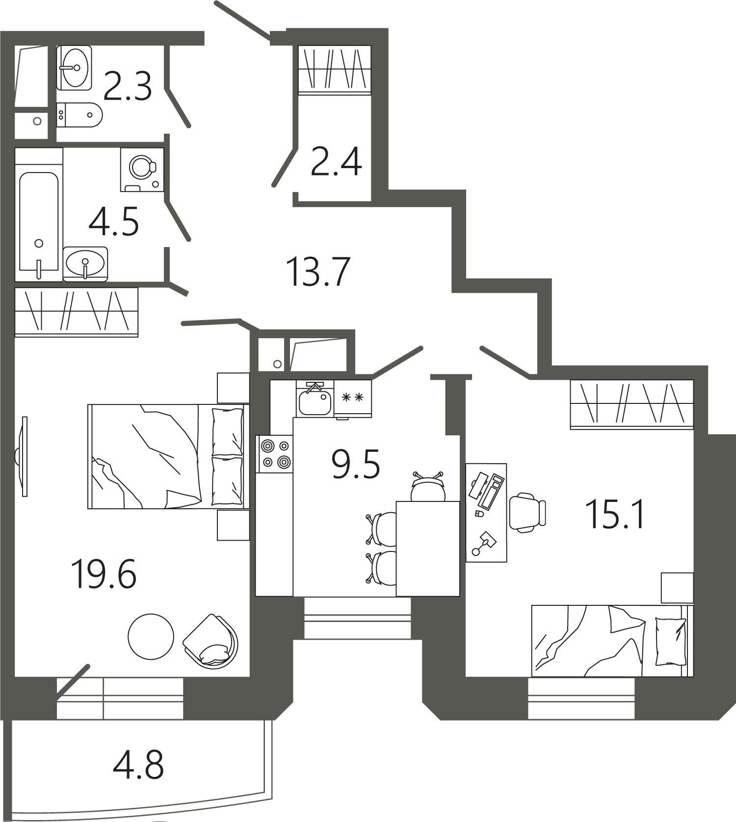 Купить 2к квартиру 55 м² в ЖК Новая Ивантеевка